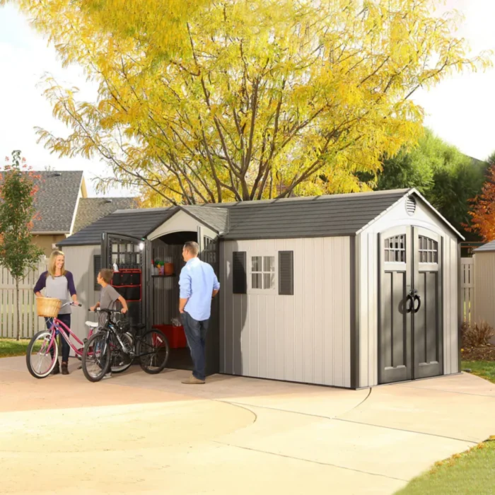 With its generous size, this shed is ideal for storing larger items such as bicycles, sports gear, and lawn equipment. For a neat, organized, and visually pleasing outdoor space, consider the Lifetime 20 x 8-Foot Storage Shed. Be sure to check local building codes to determine if a permit is required.